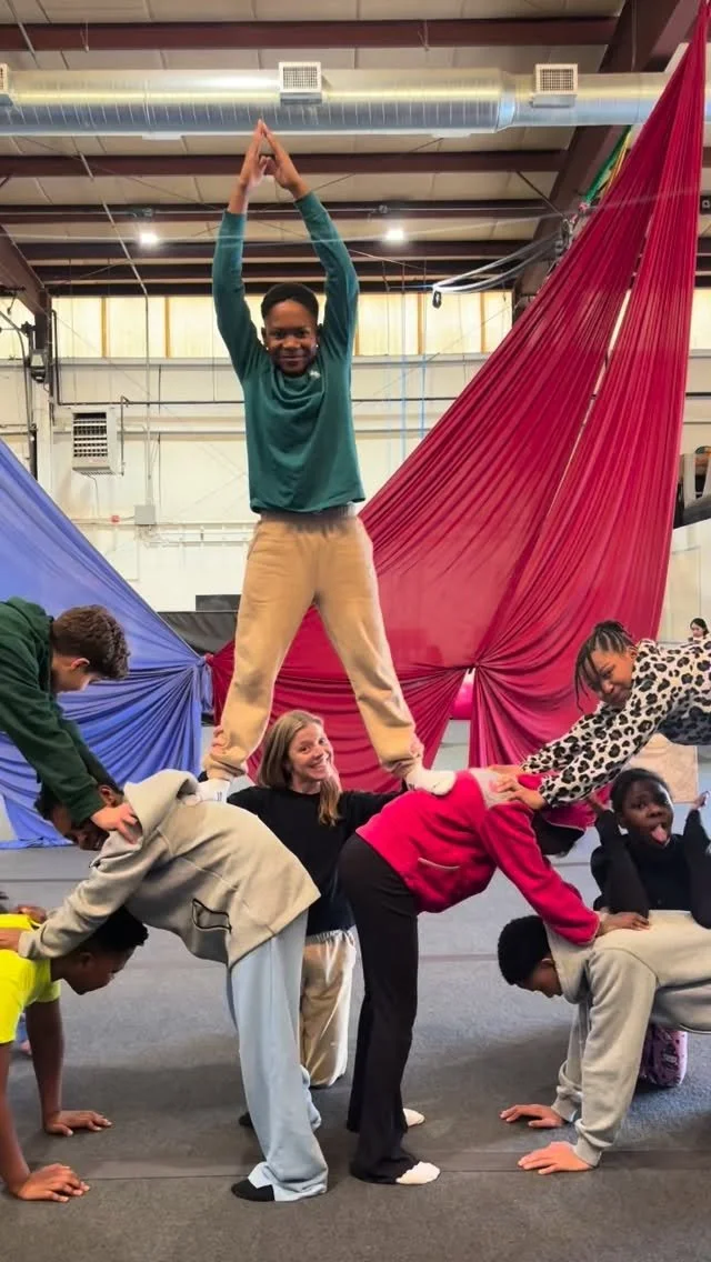 We are a a team of youth circus artists who perform bold and uplifting shows for the purpose of celebrating what it looks like to courageously learn, play, and create together.